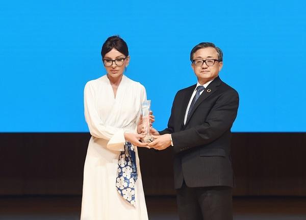 Liu Cenmin ölkəmizdə rəqəmsal idarəetmənin tətbiqi ilə dövlət xidmətlərinin inkişafı sahəsində BMT-nin xüsusi mükafatını Birinci vitse-prezident Mehriban Əliyevaya təqdim edib.