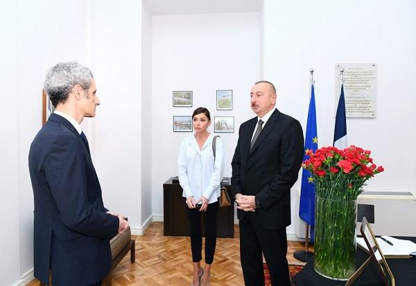Axar.az xəbər verir ki, Fransa Respublikasının ölkəmizdəki fövqəladə və səlahiyyətli səfiri Zakari Qros Prezident İlham Əliyevi və birinci xanım Mehriban Əliyevanı qarşılayıb.