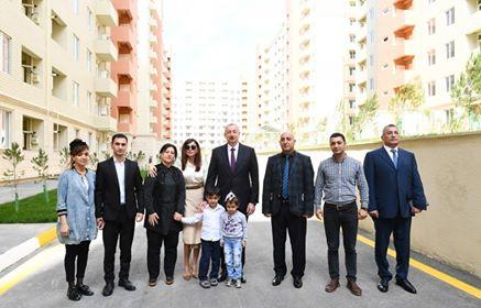 Sonra dövlətimizin başçısı və birinci xanım Xocalı rayonundan olan məcburi köçkün, şəhid ailəsi Fəridə Cabbarovanın mənzilində oldular. Bildirildi ki, dördotaqlı mənzil bütün mebellərlə təchiz edilib.