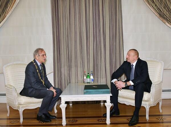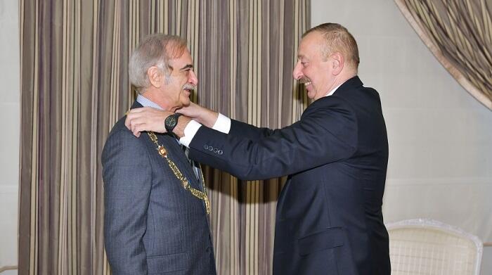 Yaxşı bilirsiniz ki, ulu öndər Heydər Əliyev həmişə sizə, sizin fəaliyyətinizə böyük diqqət göstərirdi. Zərifə xanım da həmişə sizə diqqət göstərirdi. Siz bizim evimizdə dəfələrlə olmusunuz və biz bir-birimizi 40 ildən çoxdur ki, tanıyırıq. Siz bizim üçün - valideynlərim və mənim üçün həmişə çox doğma adam olmusunuz. Ona görə xüsusi qeyd etməliyəm ki, bu gün - yubiley ərəfəsində sizinlə görüşmək, sizi təbrik etmək mənim üçün çox xoşdur. Sizin fəaliyyətiniz dövlət tərəfindən yüksək qiymətləndirilib. Siz Azərbaycanın bir neçə mötəbər mükafatı ilə təltif olunmusunuz. Ancaq bu mükafatların arasında ən ali mükafat, ən ali orden “Heydər Əliyev” ordenidir. Mənim Sərəncamımla siz bu gün “Heydər Əliyev” ordeni ilə təltif olunursunuz. İcazə verin, bu ordeni sizə təqdim edim.