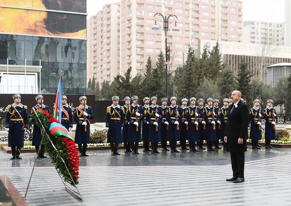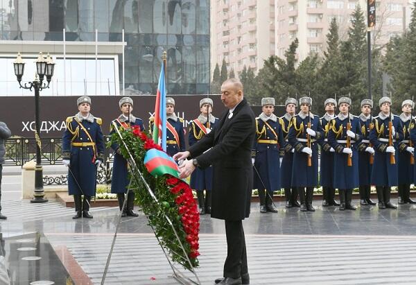 Prezident İlham Əliyev abidənin önünə əklil qoyub, soyqırımı qurbanlarının xatirəsinə ehtiramını bildirib.