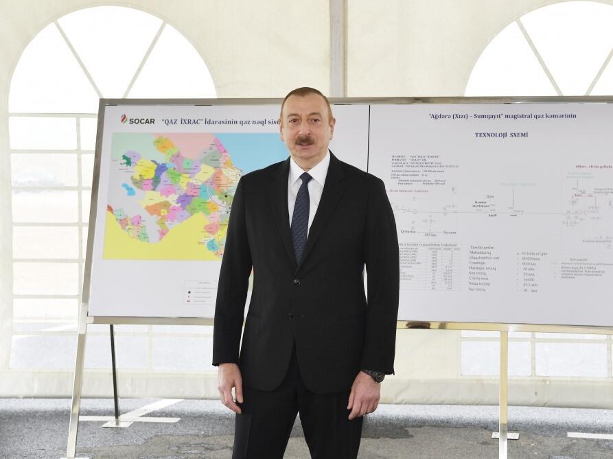 Dövlət başçısı qeyd edib ki, Bakı-Tbilisi-Qars dəmir yolu ilə 2020-ci ilin ilk altı ayında daşınmış yüklərin həcmi 2019-cu ilin eyni dövrü ilə müqayisədə 3,7 dəfə çoxdur.
