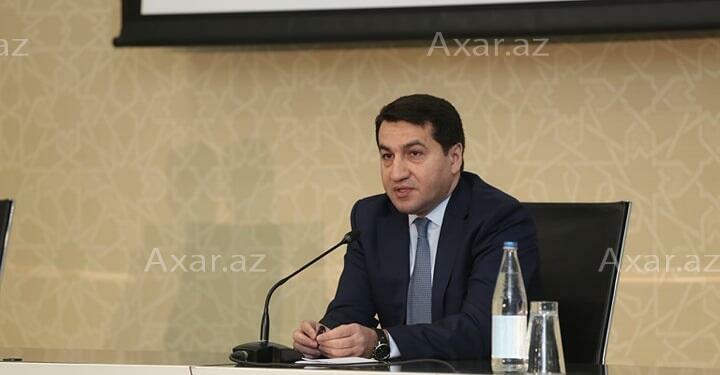 Axar.az xəbər verir ki, Hikmət Hacıyev humanitar atəşkəsə əməl etməyən Ermənistan silahlı qüvvələrinin beynəlxalq hüquqa zidd olan son təxribatları barədə geniş məlumat vermiş və 2020-ci ilin oktyabrın 17-də Gəncə şəhərinin SCUD/Elbrus əməliyyat-taktiki ballistik raketlər ilə hədəfə alındığını diqqətə çatdırıb.