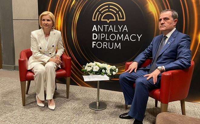 Türkiyədə keçirilən Antalya Diplomatiya Forumunda iştirakı çərçivəsində Azərbaycan Respublikasının xarici işlər naziri Ceyhun Bayramov Moldova Respublikasının Qaqauz Muxtar Ərazisinin rəhbəri İrina Vlah ilə görüşüb.