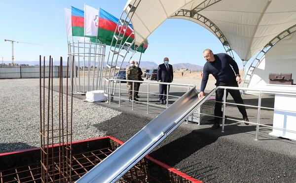 Azərbaycan Respublikasının Prezidenti İlham Əliyev və birinci xanım Mehriban Əliyeva fevralın 13-də Ağdamda yeni yaşayış kompleksinin təməlinin qoyulması mərasimində iştirak ediblər.