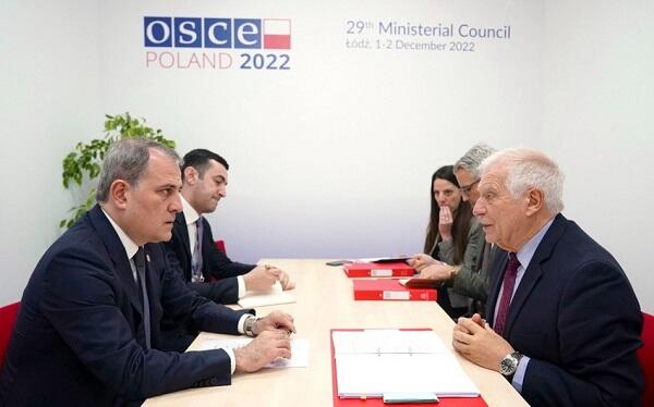 Azərbaycan Respublikasının xarici işlər naziri Ceyhun Bayramov Polşanın Lodz şəhərində keçirilən Avropada Təhlükəsizlik və Əməkdaşlıq Təşkilatının (ATƏT) Xarici İşlər Nazirləri Şurasının 29-cu iclasında iştirakı çərçivəsində Avropa İttifaqının (Aİ) Xarici Əlaqələr və Təhlükəsizlik Siyasəti üzrə Ali Nümayəndəsi/Aİ Komissiyasının Vitse-prezidenti Jozep Borrell ilə görüşüb.