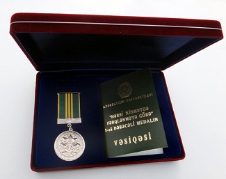 Müdafiə Nazirliyinin nümayəndəsi nazir Zakir Həsənovun əmri ilə ölümündən sonra təltif edildiyi "Hərbi xidmətdə fərqlənməyə görə" 3-cü dərəcəli medalını onun ailəsinə təqdim edib.