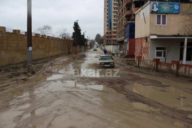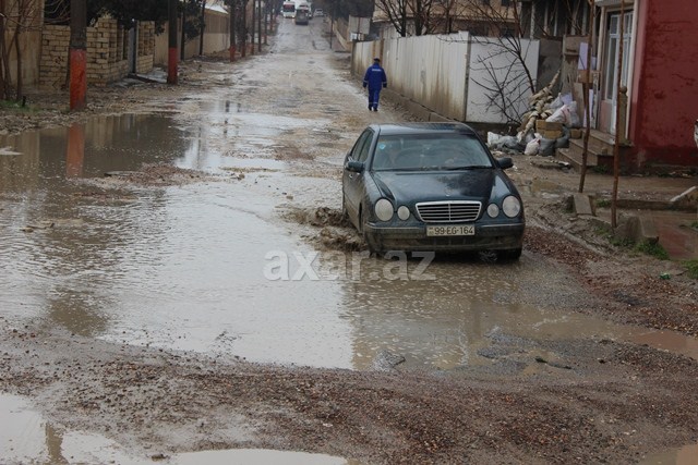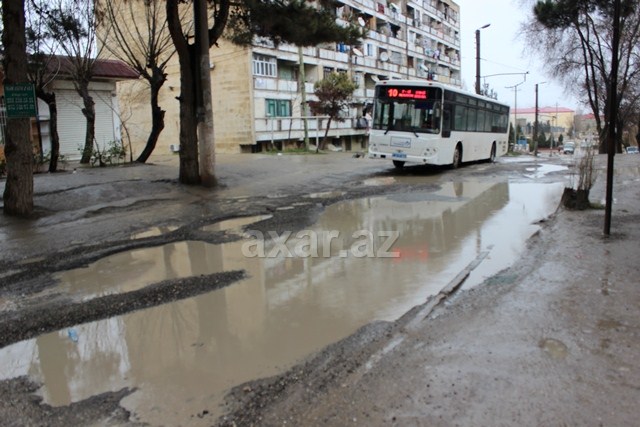 Bakının Binəqədi rayonunun Süleyman Sani Axundov küçəsindəki yollar yağış sularından sonra daha da acınacaqlı vəziyyətə düşüb.