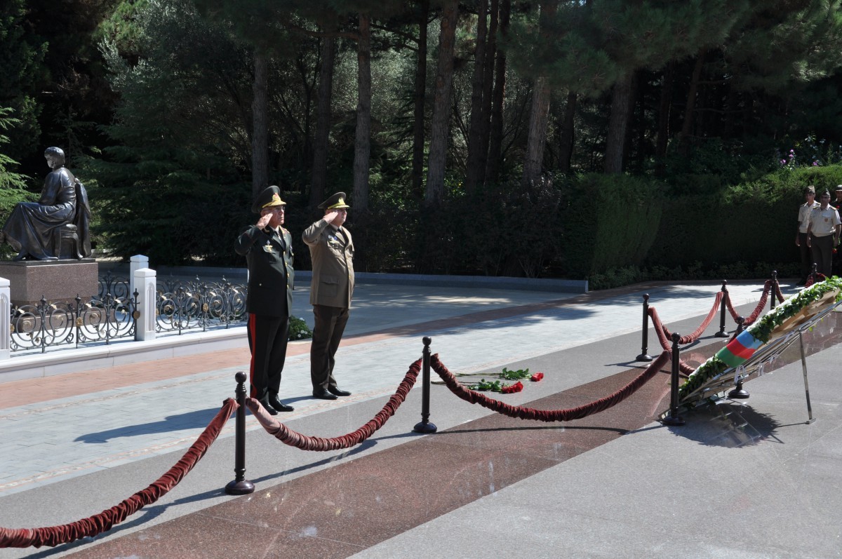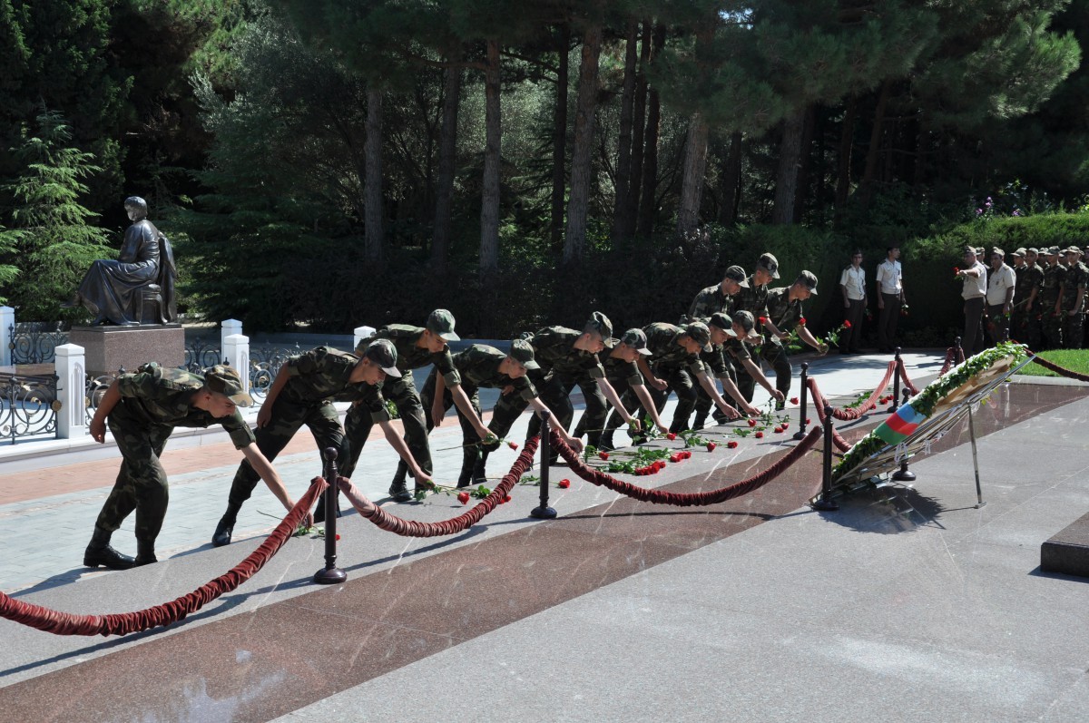 professor-müəllim heyəti və kursantlar Fəxri Xiyabana gələrək ulu