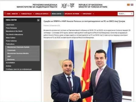 Trend-in məlumatına görə, bu haqda Makedoniya Xarici İşlər Nazirliyinin mətbuat xidməti məlumat yayıb.