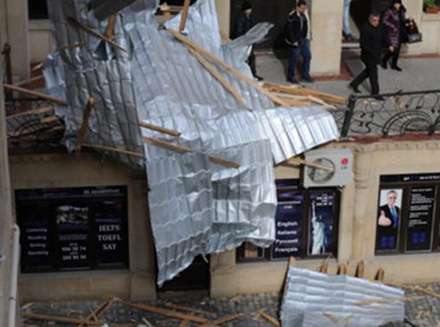 Məlumata görə, Seyfəddin Mirzəyev adlı şəxs 99 DV 970 nömrə nişanlı "Mercüdess" markalı avtomobili park edərkən, külək binanın tavanını atıb. Tavanın bir hissəsi onun avtomobilinin üzərinə düşüb. Xoşbəxtlikdən, S.Mirzəyev ciddi xəsarət almasa da, avtomobil yararsız hala düşüb.