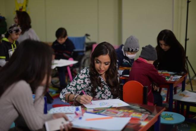 Leyla Əliyeva və Rəssamlıq Akademiyasının tələbələri, həmçinin uşaqlarla birlikdə müxtəlif mövzularda rəsmlər çəkiblər.
