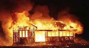 yanıb. Evin qalan hissəsi yanğından mühafizə olunub.