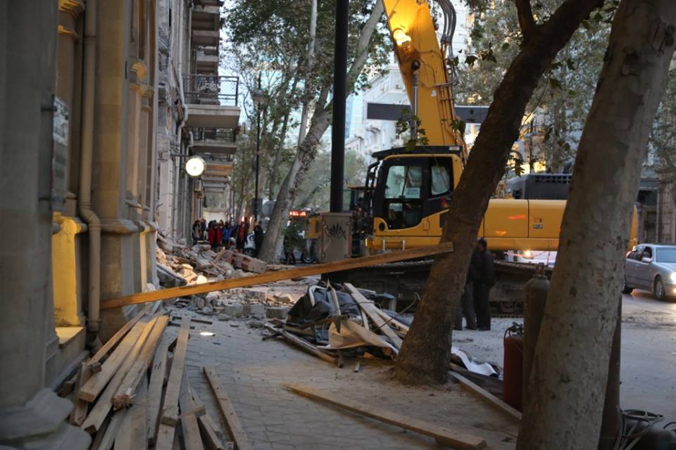 Z.Əliyeva-27 ünvanındakı tarixi binanın "böyürünə" tikilmiş geniş artırmanın söküntü yerindən fotosessiya etmək zərurəti yarandı. Çünki bu sökülən artırmanın keçmiş Müdafiə naziri Səfər Əbiyevə məxsus olduğu bildirilir.