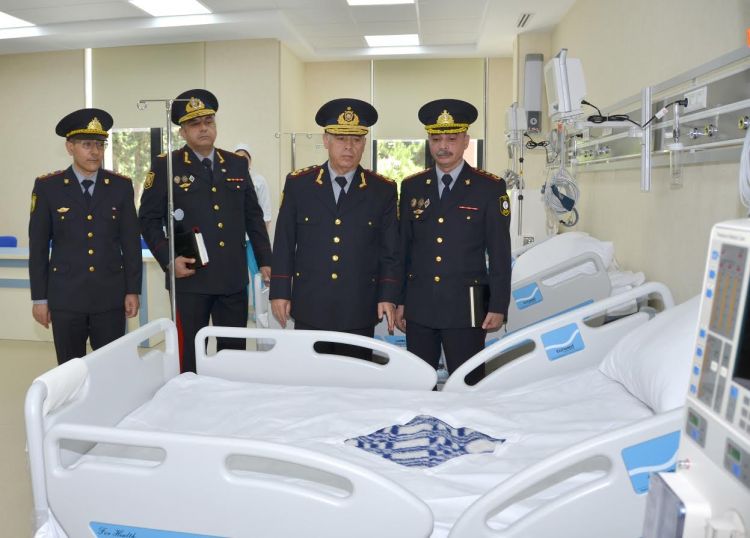 DİN Maddi-Texniki Baş İdarəsinin rəisi, general-mayor Elçin Həsənov və Tibb İdarəsinin rəisi, tibb xidməti polkovniki Mahmud Yusifov Hemodializ şöbəsinin qeydiyyat sektoru, hemodializ zalı, palata, əməliyyat və tibbi personal üçün ayrılmış otaqlar haqqında məlumat verərək bildiriblər ki, bura beynəlxalq standartlara cavab verən ən müasir texnika, avadanlıq və hermetik qapılarla təchiz olunub.