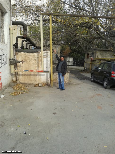 arxasındakı qazanxanaya çəkilmiş borudan asılı vəziyyətdə olan