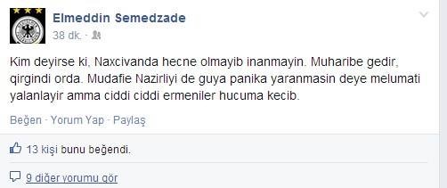xəbəri yalanlayır. Amma ciddi-ciddi ermənilər hücuma keçib".