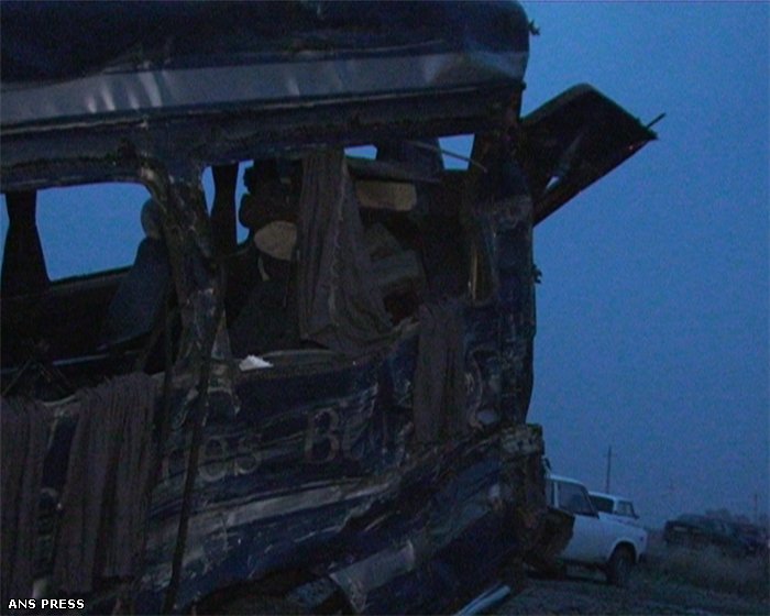 Avtobus yük maşını ilə toqquşduqdan sonra yol kənarında dayanan