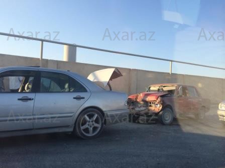 Axar.az-ın hadisə yerində olan əməkdaşı xəbər verir ki, "Lada 011" markalı avtomobillə " Mersedes" markalı avtomobil toqquşub.