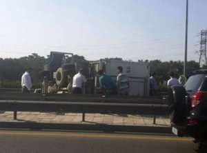 Hadisə şahidlərinin milli.az-a verdikləri məlumata görə, bir neçə dəqiqə əvvəl aeroport yolunda ərzaq daşıyan yük maşını aşıb.