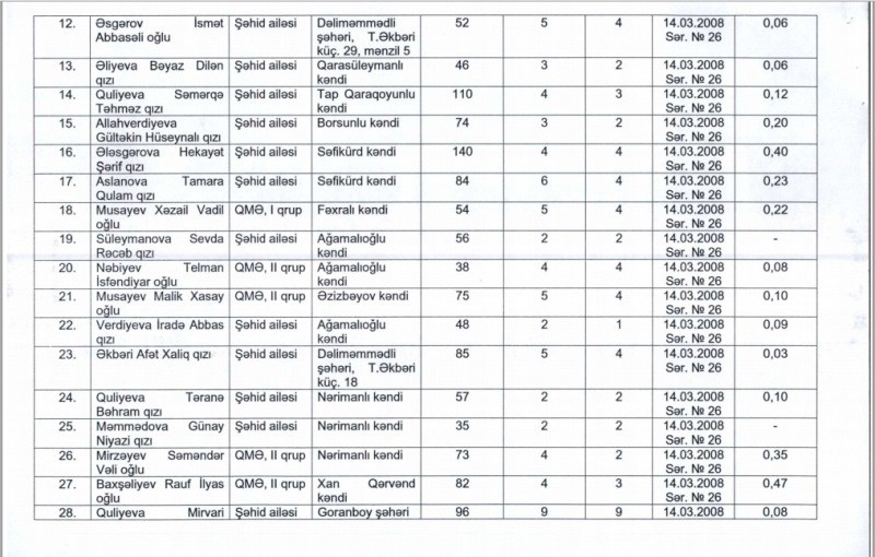 mənzillər ailələrə verildiyi gün siyahıdan sözügedən ailənin adı