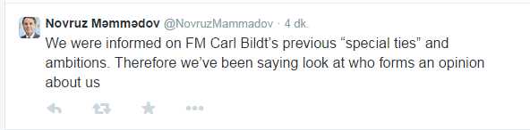 əlaqələr şöbəsinin müdiri Novruz Məmmədov şəxsi Tvitter səhifəsində