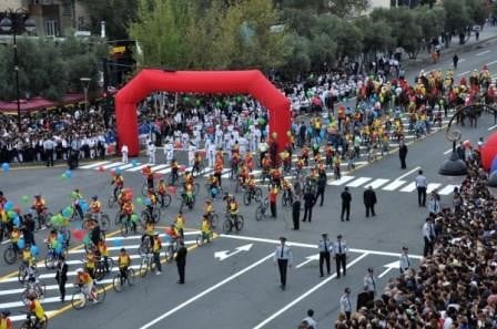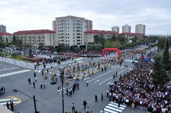 Şəhərin küçələrindən keçən marşrut üzrə yarışları on minlərlə