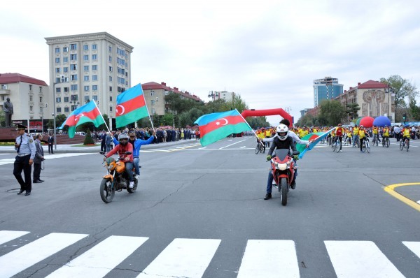 velosipedçilərin və çaparların şəhərin yubileyinə həsr olunmuş
