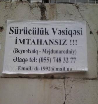 sürücülük vəsiqəsinin verilməsi ilə bağlı elanlar asılıb. Asılan