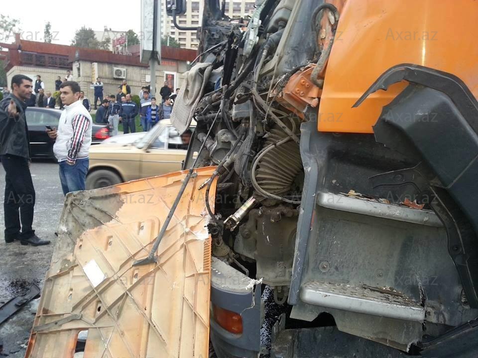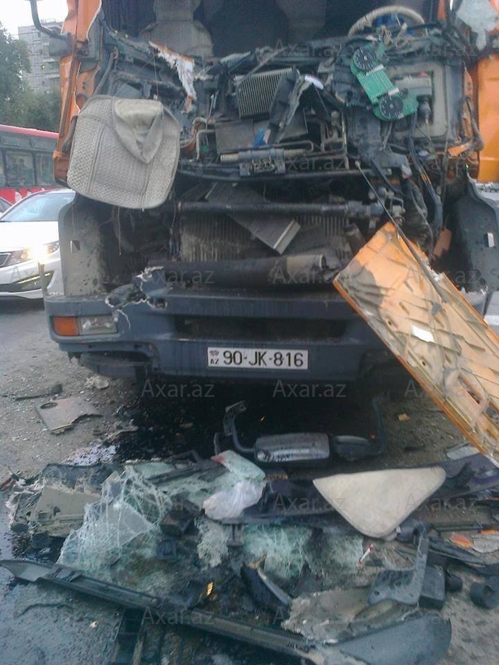 Hadisə yerində olan əməkdaşımızın verdiyi məlumata görə, qəza nəticəsində 90 JK 806 dövlət nömrə nişanlı zibil maşınının sürücüsü yaralanıb. Təcili Tibbi Yardım maşınında xəstəxanaya göndərilən yaralının vəziyyətinin ağır olduğu bildirilir.