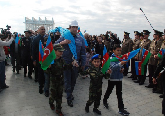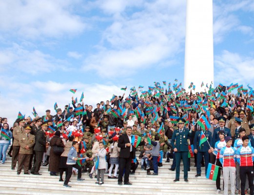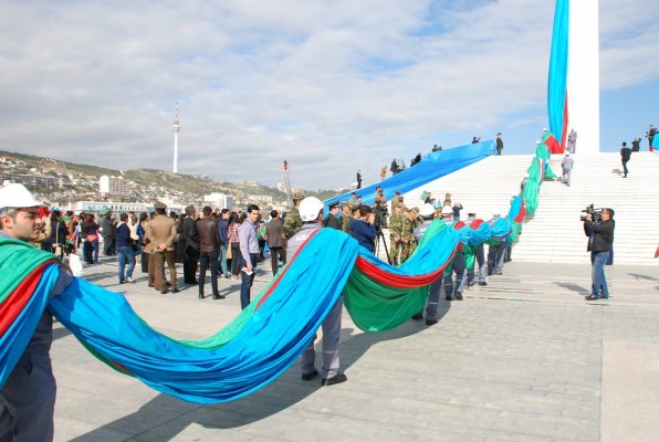 AzərTac xəbər verir ki, aksiyada ictimaiyyətin çoxsaylı nümayəndələri, incəsənət xadimləri, idmançılar, hərbçilər iştirak ediblər. Aksiya zamanı Dövlət bayrağı təmtəraqlı şəkildə meydana gətirilib və qaldırılıb.