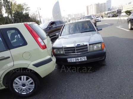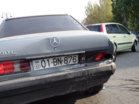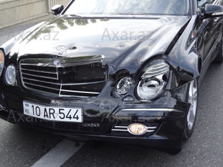 Axar.az xəbər verir ki, hadisə 10 AR 544 dövlət nömrə nişanlı "Mersedes E-Klass" markalı avtomobilin 01 BN 876 dövlət nömrə nişanlı "Mersedes E-190" markalı nəqliyyat vasitəsinə çırpılması nəticəsində baş verib.