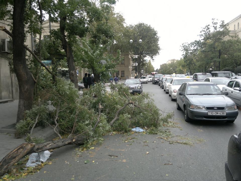 Axar.az xəbər verir ki, Rəşid Behbudov 15-də güclü külək nəticəsində yol kənarındakı ağaclardan biri aşıb.