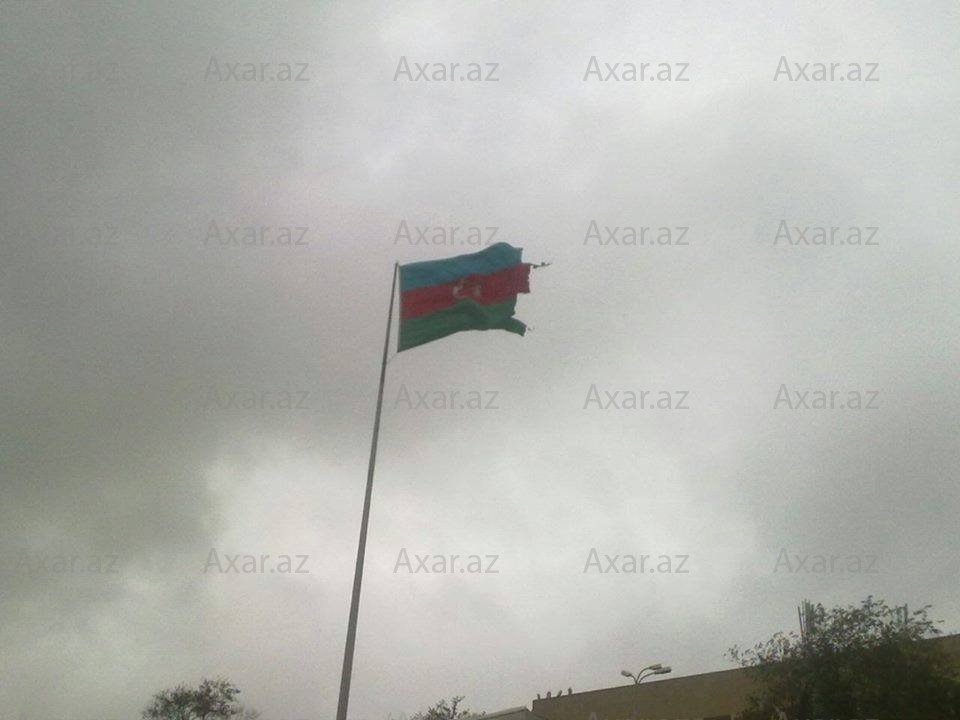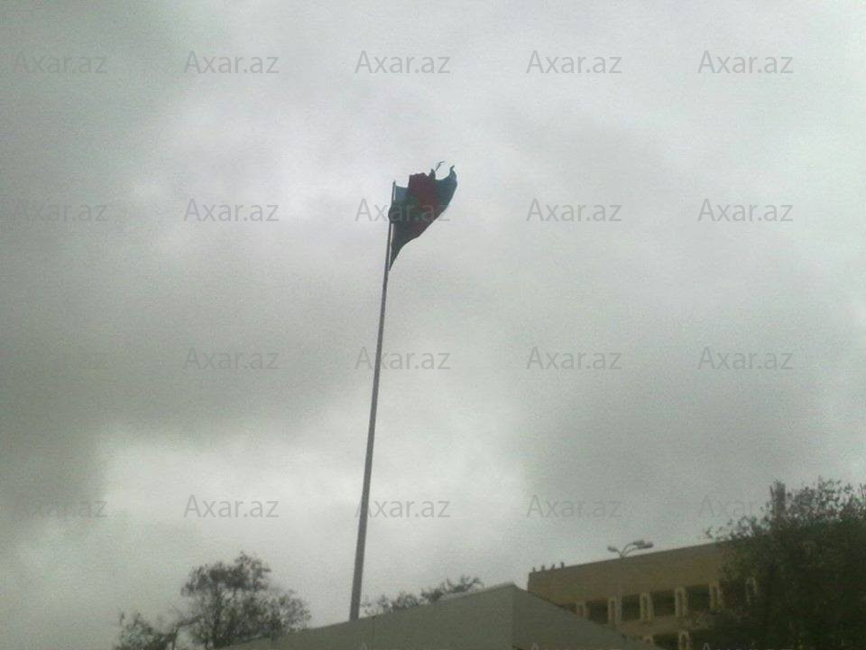 Bakıda güclü külək dövlət bayrağını zədələyib.