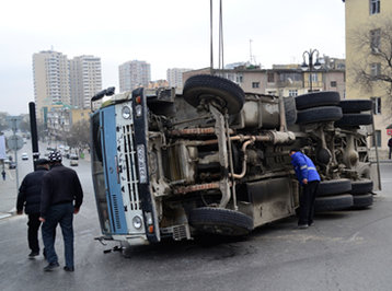 Bakı-Sumqayıt yolunda yük maşını aşıb.