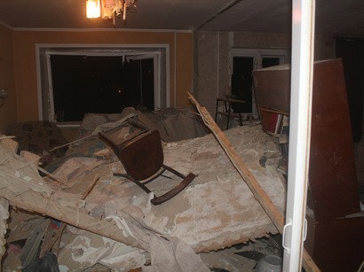 Nəticədə evin karton və lambirdən ibarət tavan hissəsi qismən tökülüb və pəncərə şüşələri qırılıb.
