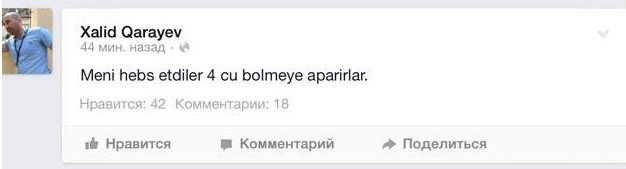 Axar.az xəbər verir ki, bu barədə Xalid Qarayev özü Feysbuk səhifəsində bildirib: