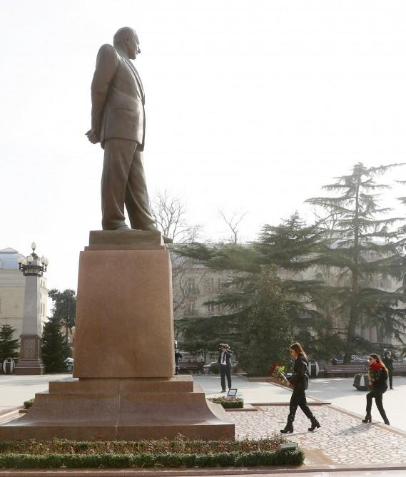 Axar.az xəbər verir ki, Birinci vitse-prezident Mehriban Əliyeva və Heydər Əliyev Fondunun vitse-prezidenti Leyla Əliyeva Ulu öndər Heydər Əliyevin Gəncə şəhərinin mərkəzində ucaldılan abidəsini ziyarət edərək önünə gül dəstələri qoydular.