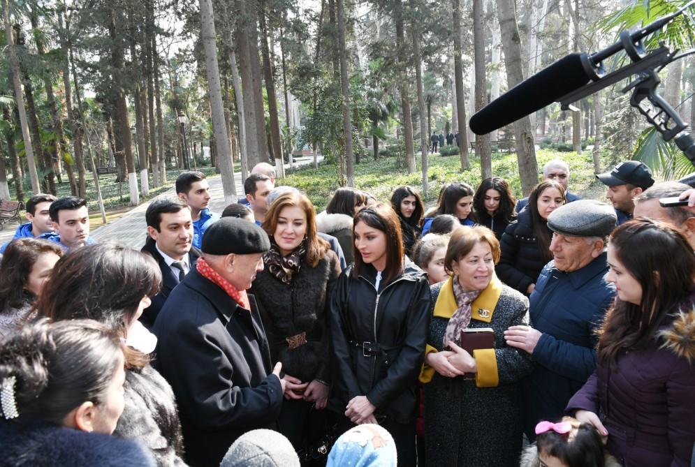 Azərbaycan Respublikasının Birinci vitse-prezidenti Mehriban Əliyeva və Heydər Əliyev Fondunun vitse-prezidenti Leyla Əliyeva fevralın 14-də Gəncənin görməli yerlərindən biri olan “Xan bağı” mədəniyyət və istirahət parkında sakinlərlə görüşüblər.