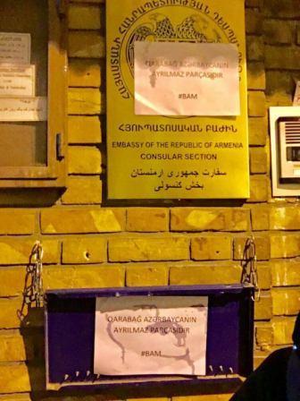 Axar.az xəbər verir ki, dünən Tehrandakı Ermənistan konsulluğunun binasına soydaşlarımız tərəfindən bu addımı pisləyən vərəqələr yapışdırılıb.