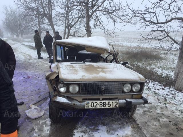 idarəetməni itirən "Mersedes" markalı avtomobil sürüşərək ağaca