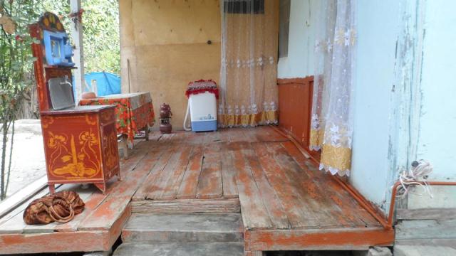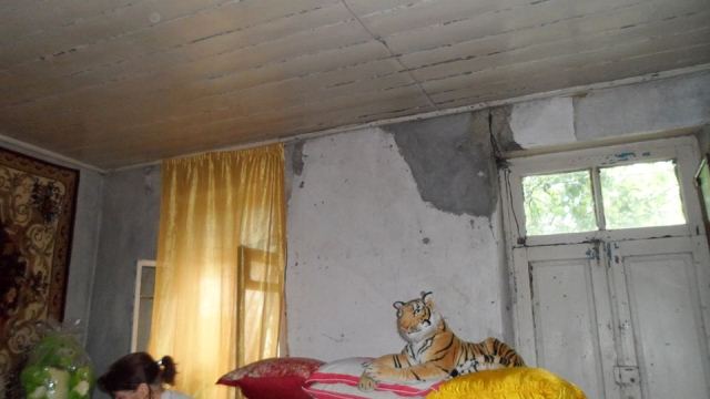 binada yaşayır. Köhnə, tavanı çökmüş, divarları "quzulamış" bu