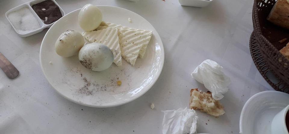 “Masallı rayonunda yerləşən Viləş Palas MMC-də, yəni Viləş İstirahət Mərkəzində səhər yeməyi yedik. Şəkildə də gördüyünüz kimi, 4 yumurta (biri yeyilib) bir pendir və bir çaynik çaya 40 manat tələb etdilər. Hələ də utanmadan deyirlər ki, biz həyətə, yəni otelin binasından kənara səhər yeməyi vermirik. Yəni səhər yeməyini “Viləş”də ancaq oteldə qaldığın halda yeyə bilərsən. Baxın, səhvi biz eləmişik ki, həyətdə səhər yeməyi yemişik”, - jurnalist vurğulayıb.