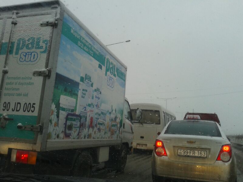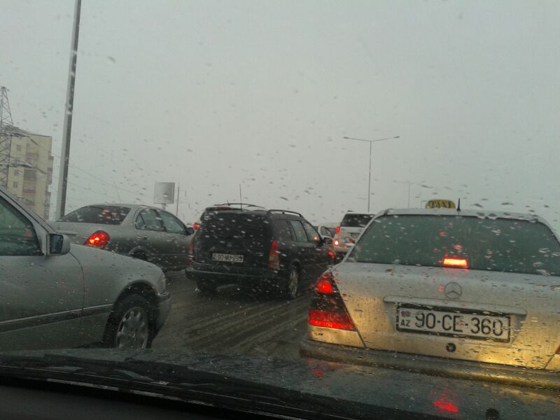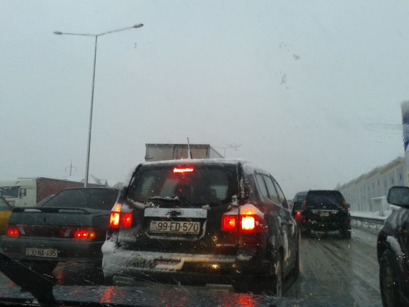 Abşeron yarımadasına yağan qəfil qar Bakı–Sumqayıt yolunda tıxaca səbəb olub.