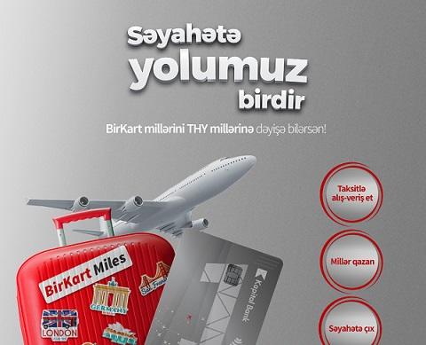 “Kapital Bank”ın təqdim etdiyi “BirKart Miles” (BKM) kartında nağdsız ödənişlər edərkən yığılan milləri, Türk Hava Yollarının (THY) millərinə birə-bir dəyişmək mümkündür.