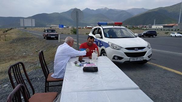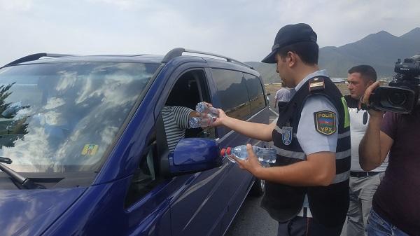 Günün qızmar vaxtlarında avtomobil, xüsusən avtobus və mikroavtobus idarə edən sürücülər saxlanılaraq, onların istirahət etməsinə şərait yaradılıb. Yol polisi əməkdaşları sürücülərə və nəqliyyat vasitəsində olan sərnişinlərə sərin sular paylayıb, onların səhhətləri ilə maraqlanıblar. İsti havanın təsirindən özünü halsız hiss edənlər, səhhətində problem olanlar elə yerindəcə həkim nəzarətindən keçirilib, onlara tibbi yardım göstərilib. DYPB-nin əməkdaşları isti havalarda sürücülərə yollarda diqqətli olmalarını, hərəkəti birdəfəlik deyil, fasilələrlə davam etdirməyi məsləhət görüblər. Bunun həm onların, həm də sərnişinlərin həyatı üçün vacib olduğu bildirilib.