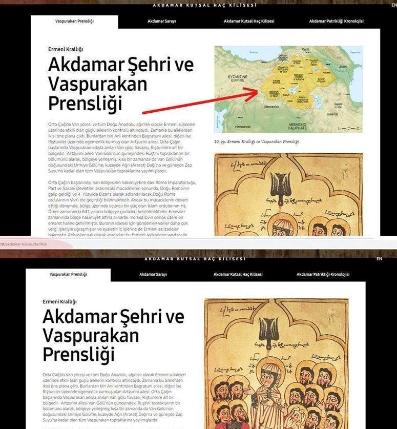 Qeyd edək ki, Türkiyə Prezident Administrasiyasının Kommunikasiya İdarəsinə məxsus “Akdamarkilsesi.gov.tr” internet saytında saytında yerləşdirilmiş və 10-cu əsrə aid olduğu bildirilən xəritədə tarixi Azərbaycan torpaqlarının böyük bir hissəsinin, o cümlədən də Qarabağ, Zəngəzur, Göyçə, İrəvan və Naxçıvanın ermənilərə aid olduğu açıq şəkildə qeyd olunmuşdu.