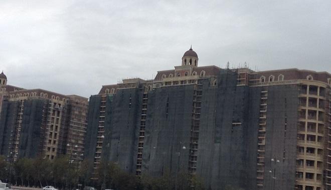 “Koroğlu” metrostansiyasının yaxınlığında, Heydər Əliyev prospektində xüsusi layihə əsasında tikilən binaların üzlükləri dəyişdirilir.