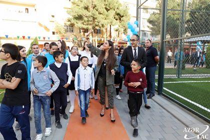 Axar.az xəbər verir ki, Heydər Əliyev Fondunun vitse-prezidenti, IDEA İctimai Birliyinin təsisçisi və rəhbəri Leyla Əliyeva həyətin açılışında, o cümlədən tədbir zamanı keçirilmiş kütləvi ağacəkmədə iştirak edib.