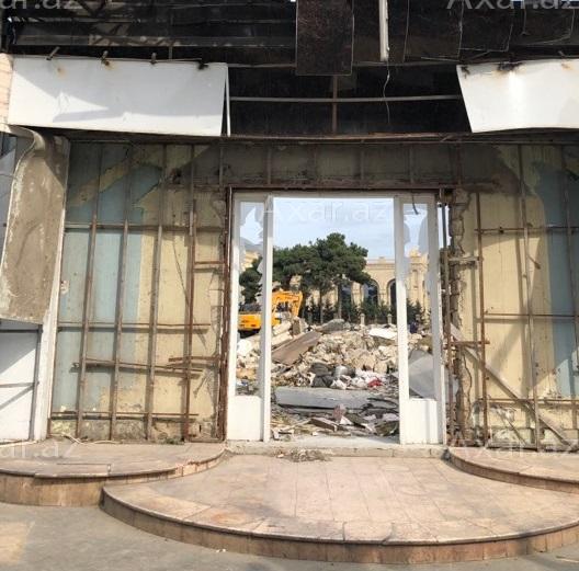 Axar.az xəbər verir ki, əvvəlcə şöküntü işləri içəridən aparılırdı və çöldən hiss olunmurdu. İndi isə fasadlar və hasarlar da sökülür.